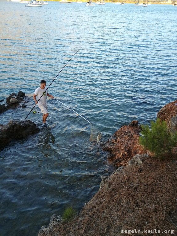 In Gaios habe ich dann mit Brot eine kleine Brasse (10cm) gefangen, der ging dann aber zurück.