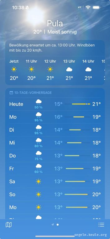 Allerdings weil das wetter so bescheiden werden soll haben wir das gecancelt. Wie es aussieht wärs stürmisch geworden und nass, am letzten Tag im Sturm heimkommen wäre auch eine Herausforderung gewesen. Hier ein paar Screesnhots der Vorhersagen: