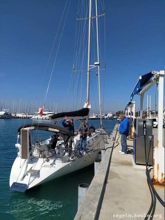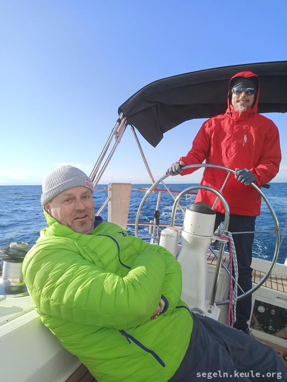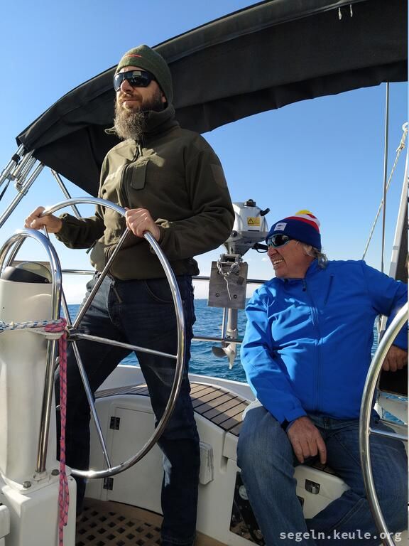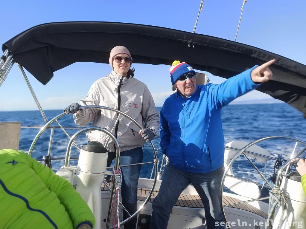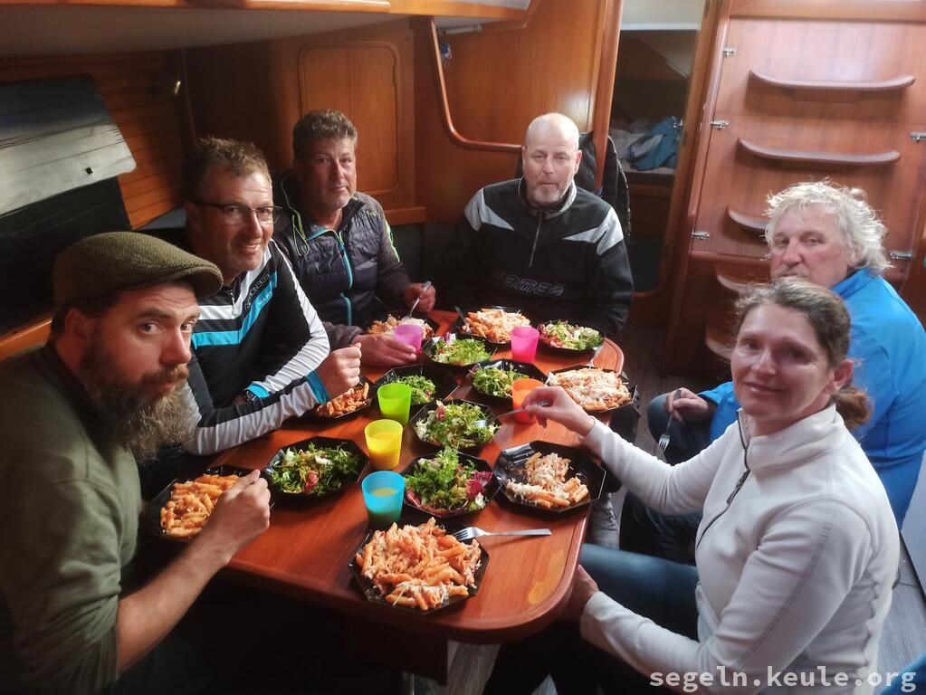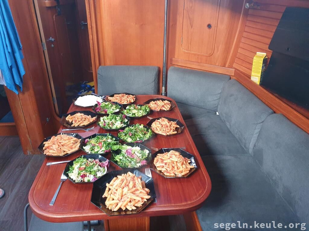 Am Morgen haben wir zwei Stunden lang Hafenmanöver geübt, danach ging es wieder an die Manöverkreise. Bei raumem Wind konnten wir dann gemütlich Mittagessen an Bord genießen. Später segelten wir bei halbem Wind in Richtung Novigrad und nutzten die Gelegenheit, um weitere Manöver, hauptsächlich "Boje über Board", zu üben. Gegen 17:15 legten wir schließlich mit dem Heck und den Mooringleinen im Hafen an.