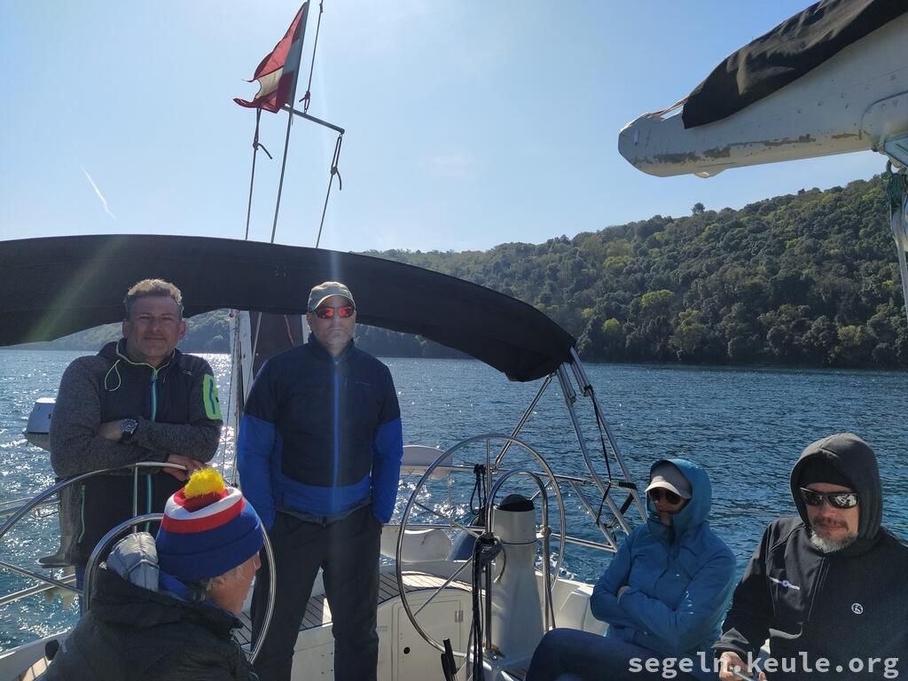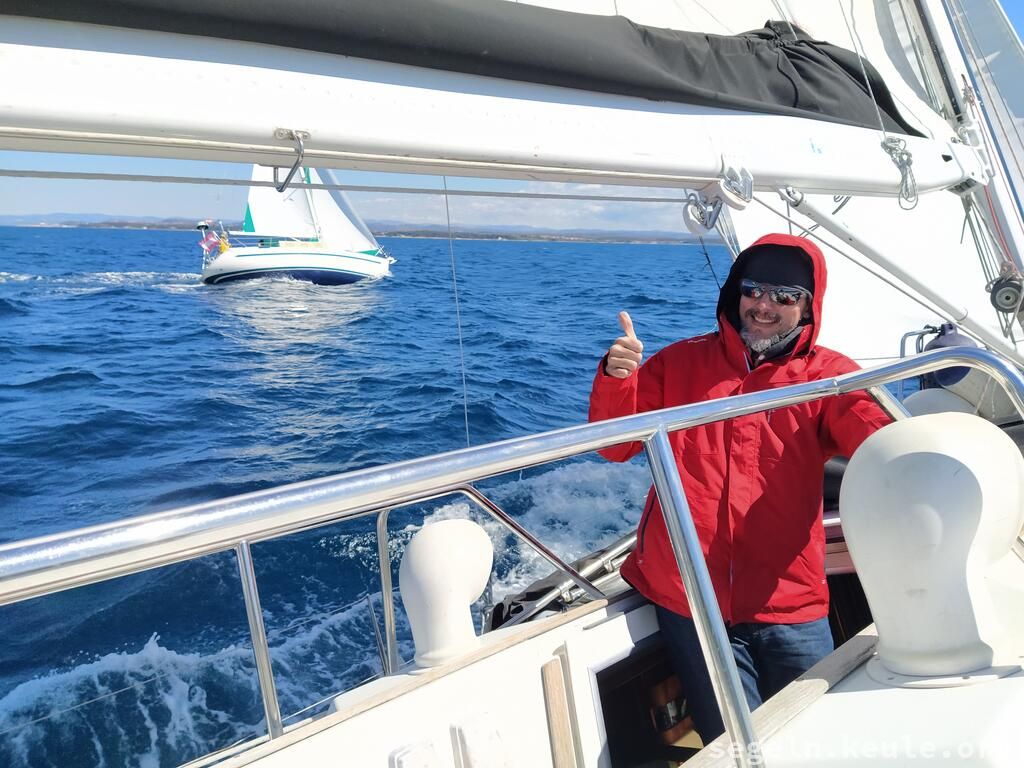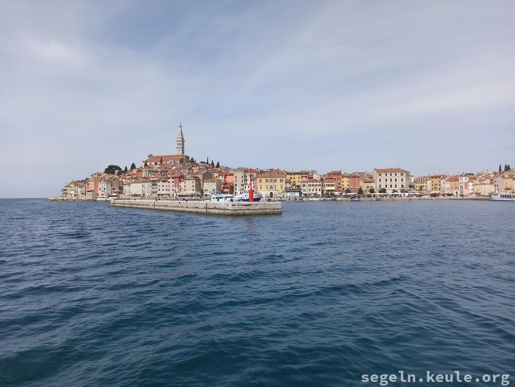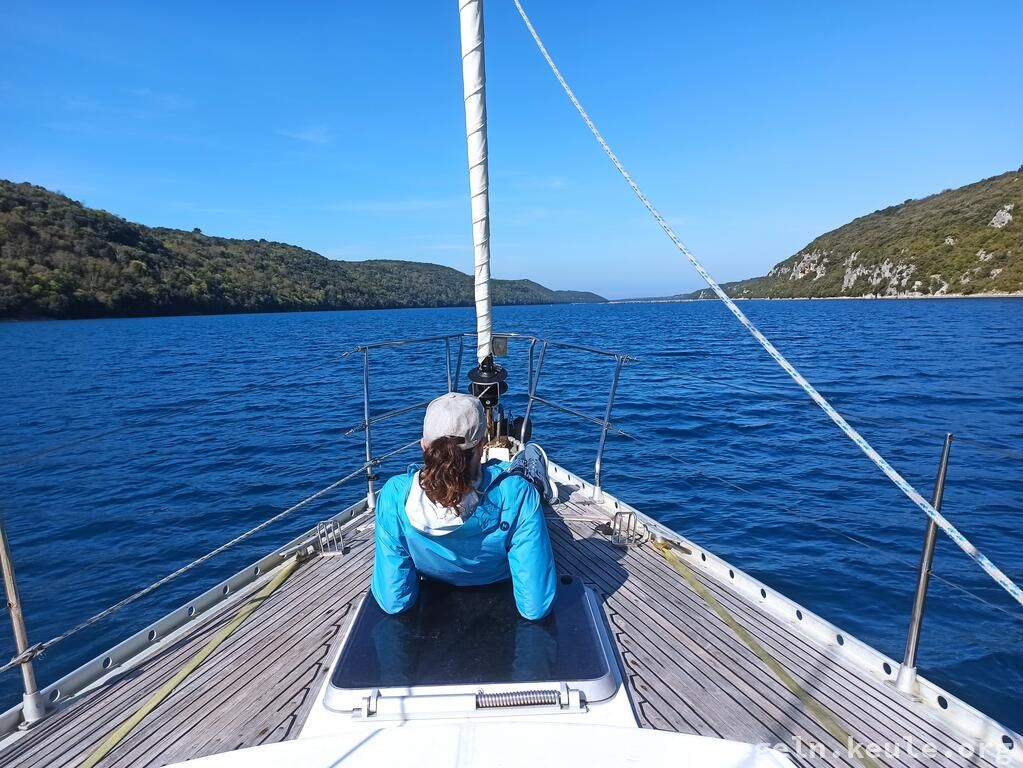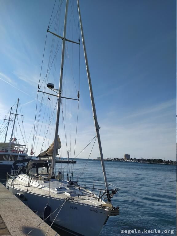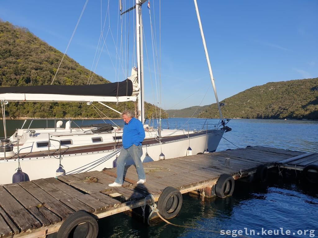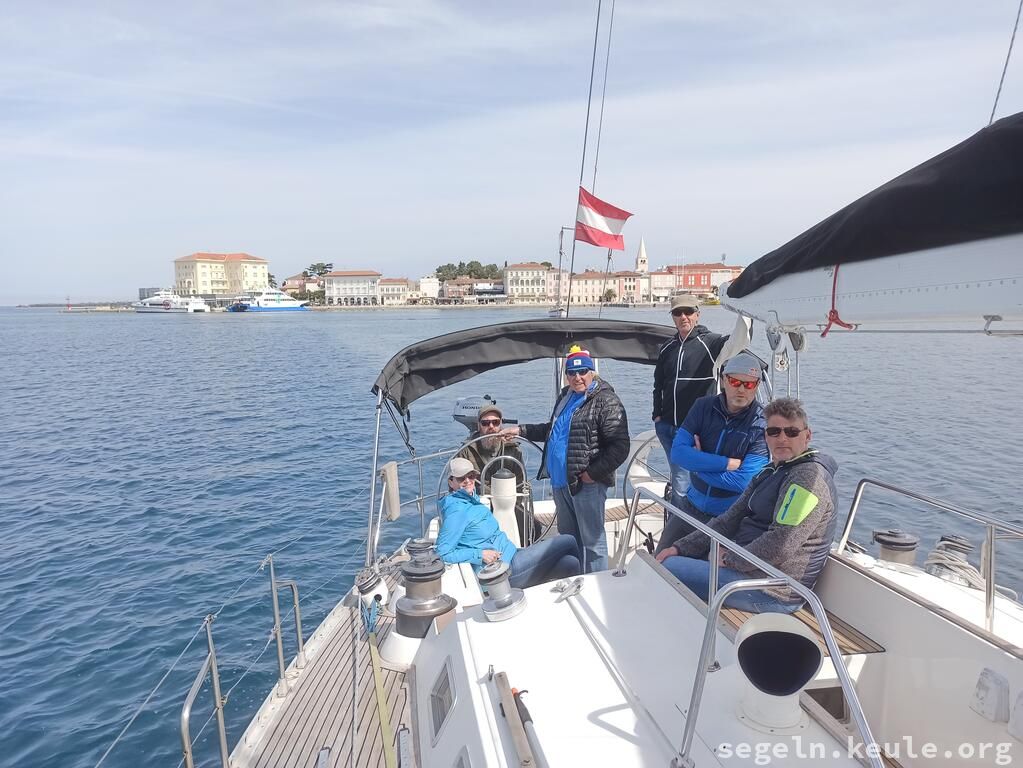 Während die anderen klar Schiff machten Patricia und ich einen Erkundungsspaziergang vom alten Steg zum Hafen und wurden dann später dort eingessammelt. Um 09:00 Uhr setzten wir unsere Fahrt aus dem Limsky Kanal fort. Kurz vor Mittag standen erneut Boje-über-Bord-Manöver auf dem Programm. Für das Mittagessen ankerten wir in der idyllischen Laguna Mulandria. Nach dem Ankerlichten ging es weiter nach Norden, zunächst unter Motor. Später, als der Wind auffrischte, setzten wir die Segel. Gegen 18:00 Uhr erreichten wir wieder den Stadthafen von Umag und legten routiniert mit dem Heck und den Mooringleinen an der Mole an.